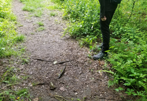 Almost right away we came across this guy (girl) – Brigid just missed stepping on him (her). Can you see the frog?