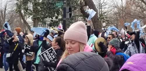 Approximately 100 demonstrators attended the New York City rally, which organizers dubbed “F*** the March for Life” in an Instagram post. Many of the participants used drums, shakers, and other noisemakers, which were audible to those inside the cathedral.