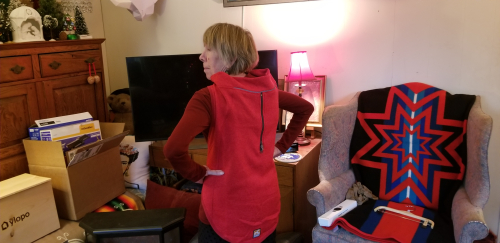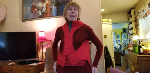 While Brigid was out shopping – buying chinchilla food – she spied a red outfit she rather liked and bought it for herself. A unique outfit and on Christmas she had a bit of a showing –
