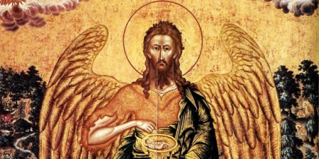 In the Gospels of both Luke (7:28) and Matthew (11:11), Christ explicitly says that “among those born of women there is no one greater than John.” A liturgical hymn sung on the feast of the Baptist’s nativity proclaims John is “the culmination and the crown of the prophets.” He is understood as holding a special place among the saints: he is a heavenly man, described as the “Angel of the Desert” (that is, the “messenger” in the wilderness).